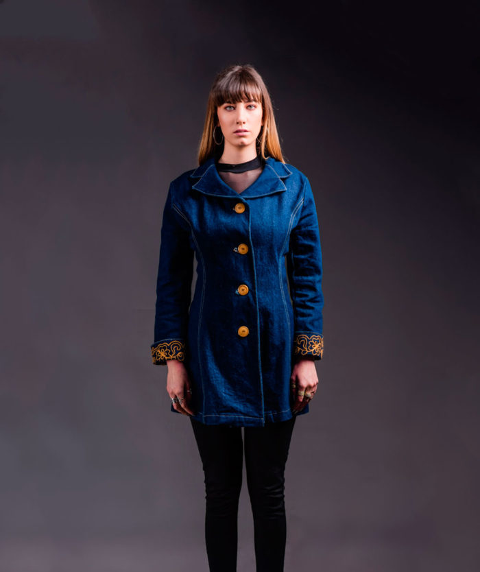 Abrigo en Denim con bordado de alpaca Suri