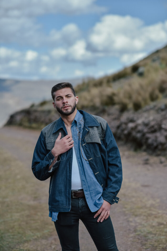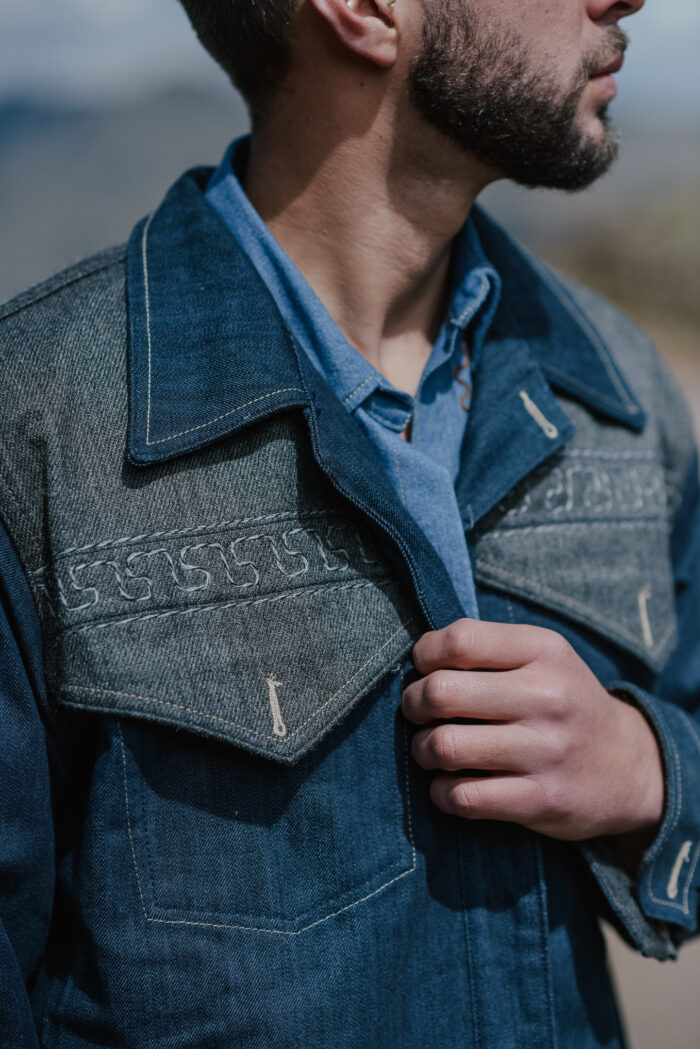 Casaca de Denim con aplicaciones y bordados en fibra de alpaca