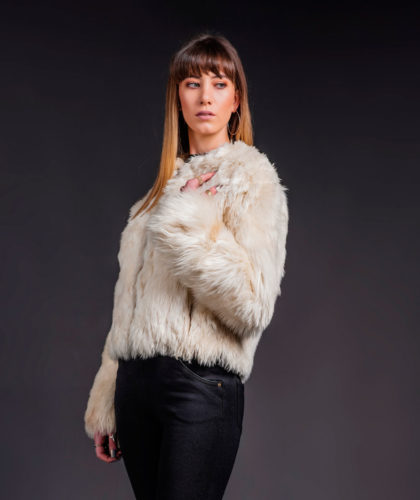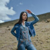 Casaca de Denim con aplicaciones y bordados en fibra de alpaca