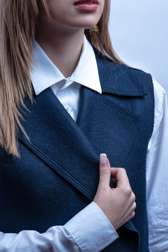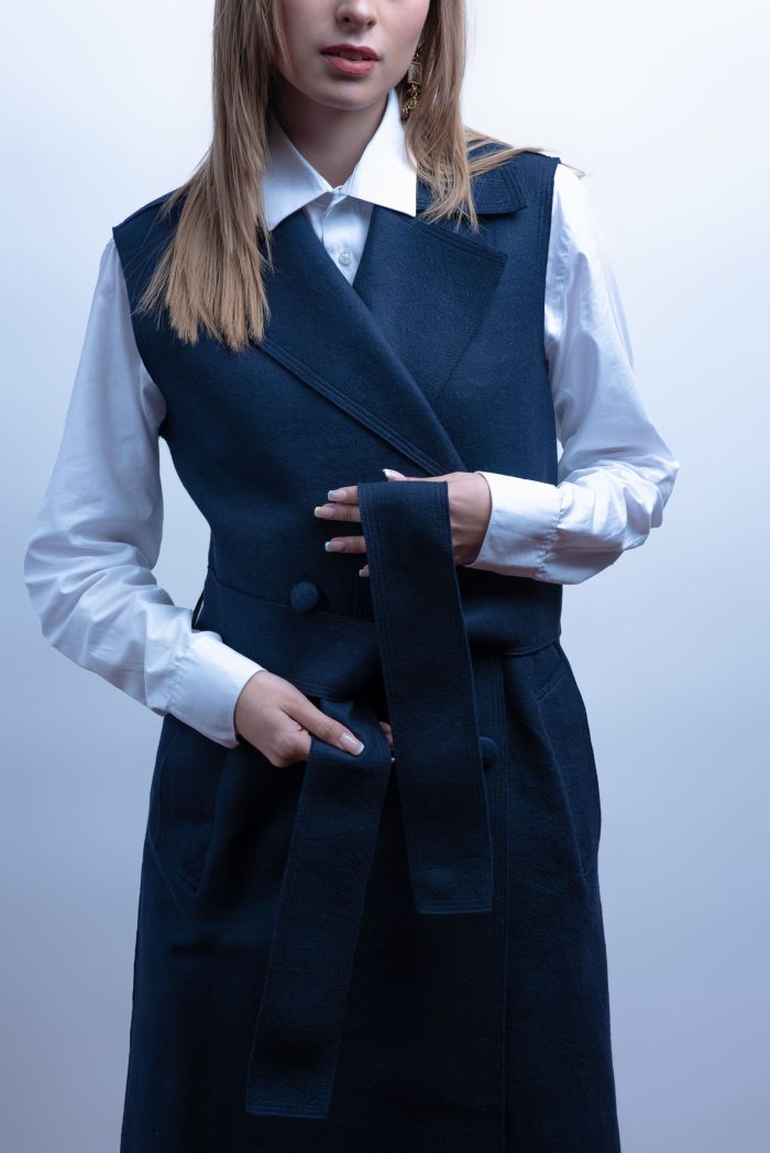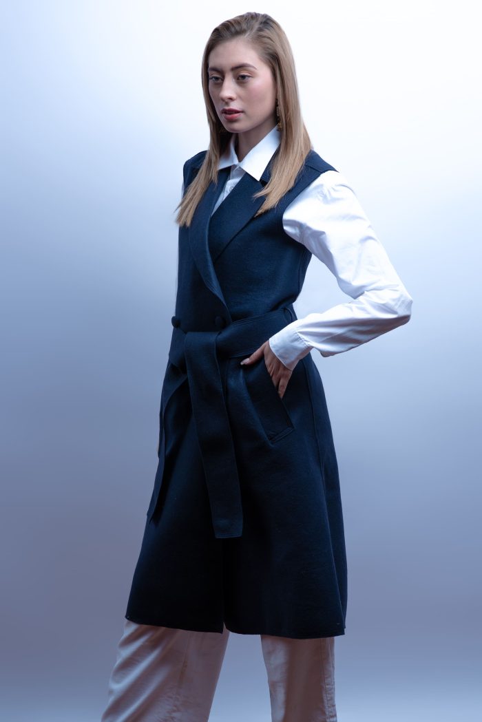 Chaleco abrigo azul marino de fibra de vicuña