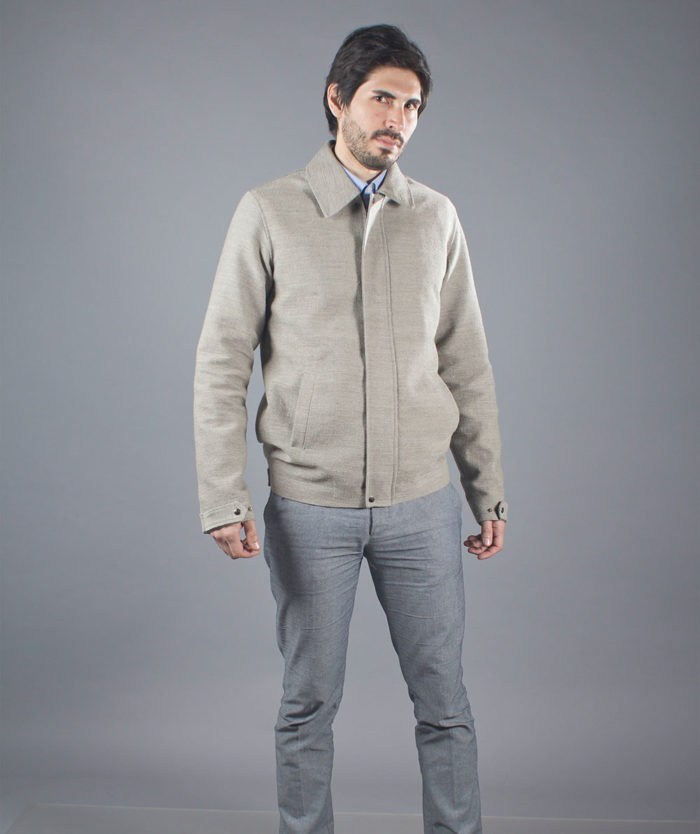 Casaca para varon con fibra de alpaca Suri y fibra de lino.